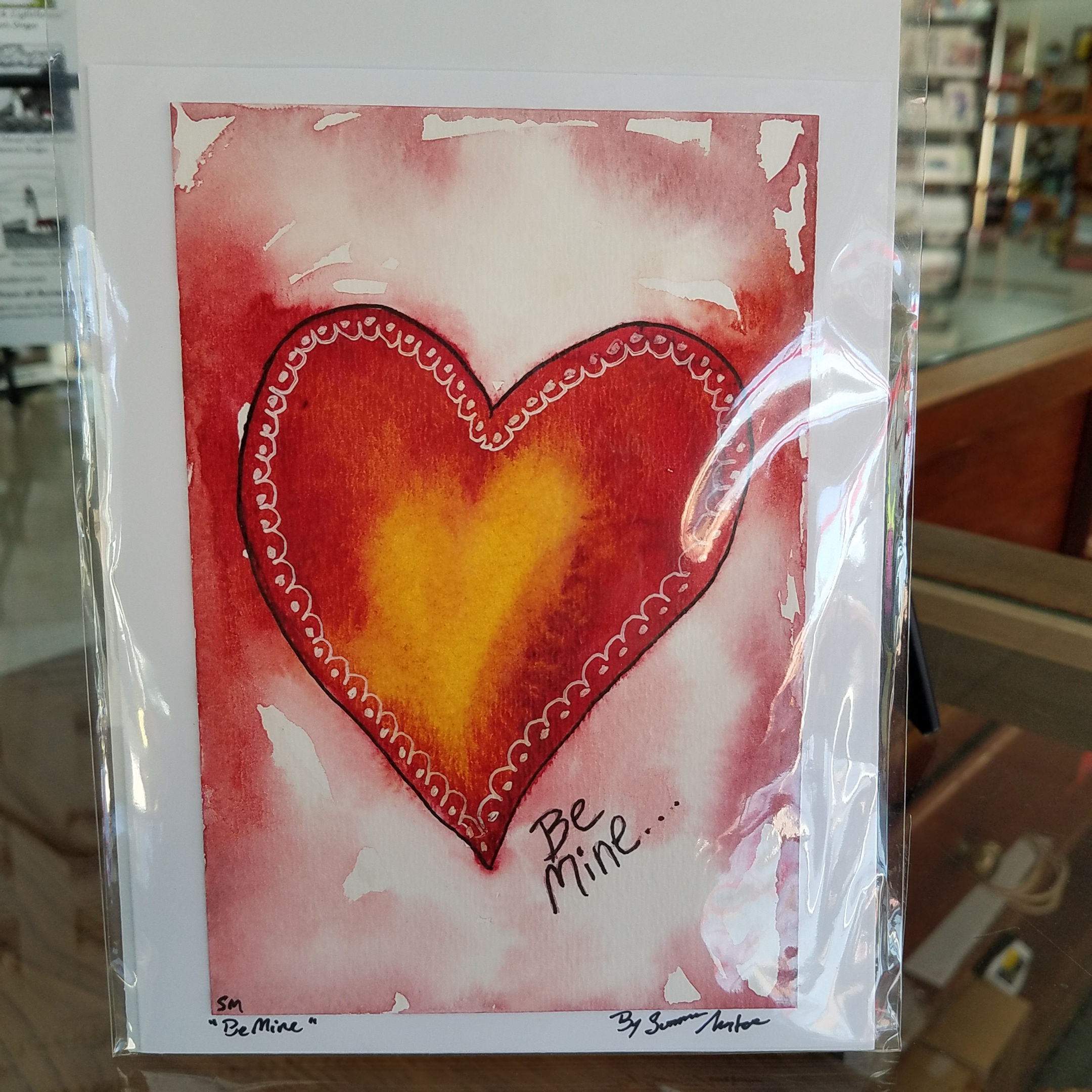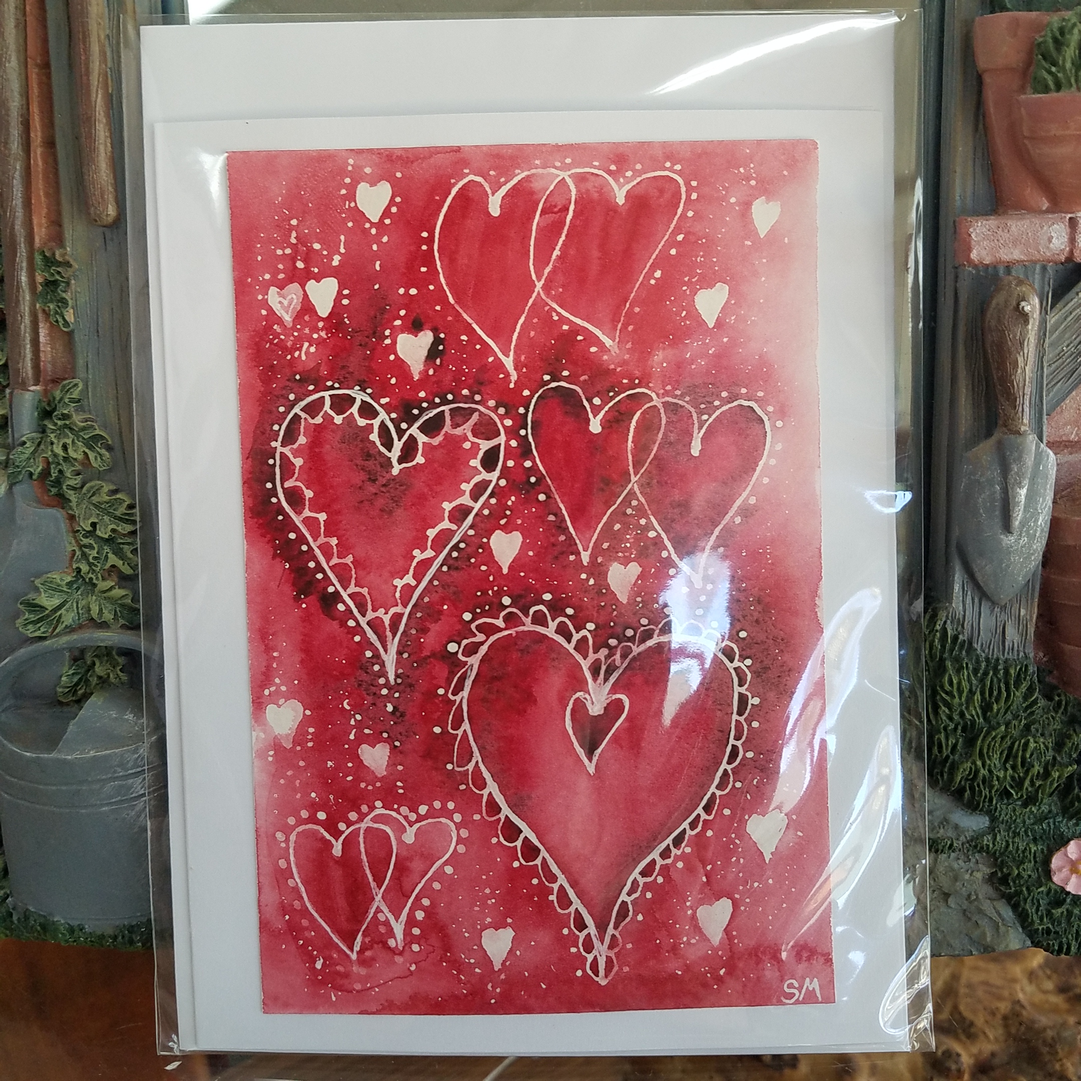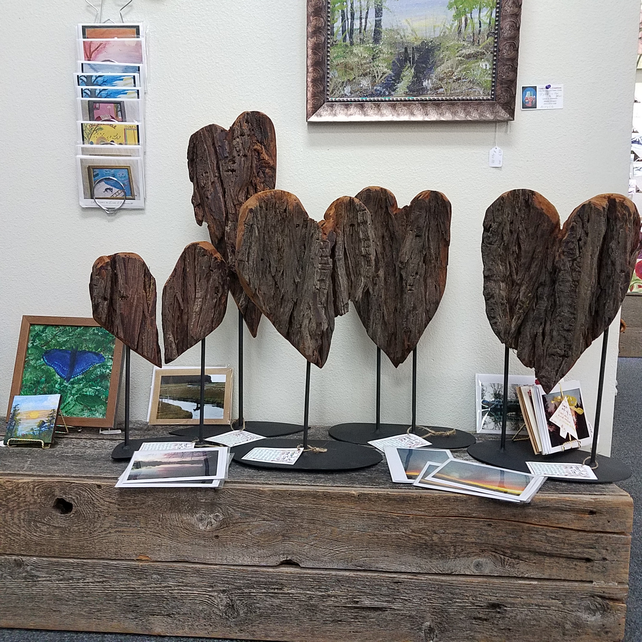 February is right around the corner, and love is in the air down at Linn County Arts Guild Gifts and Gallery. Mia just brought in some festive, decorative eggs. Summer has one of a kind watercolor Valentine’s cards. Colleen is showing her love of hearts with bark and metal, with a little wire wrapping on the side. And if it’s jewelry you’re after, we’ve got that, too! These heart shaped pieces are by Gina Darby. Come check out our lovely offerings today!