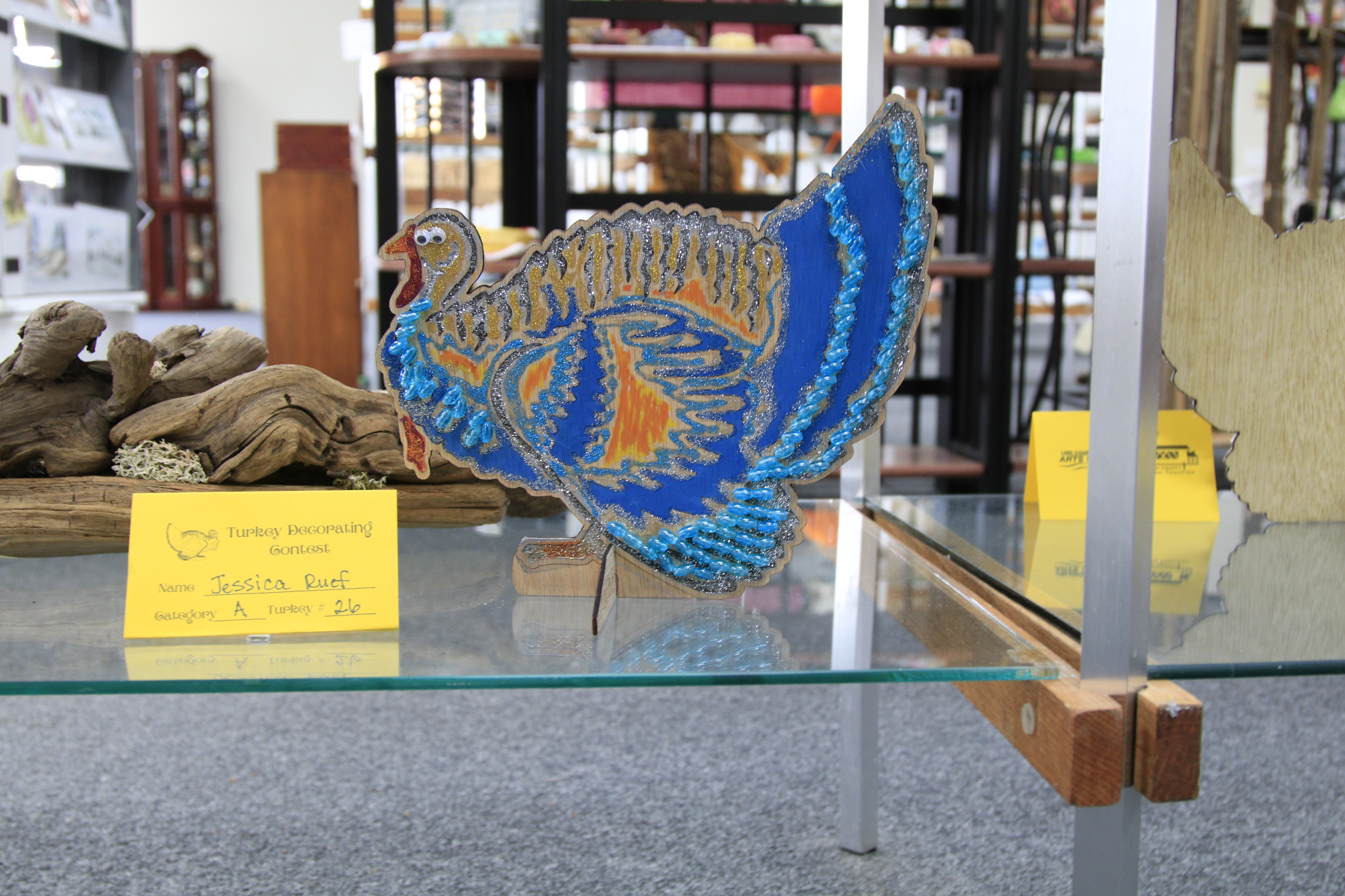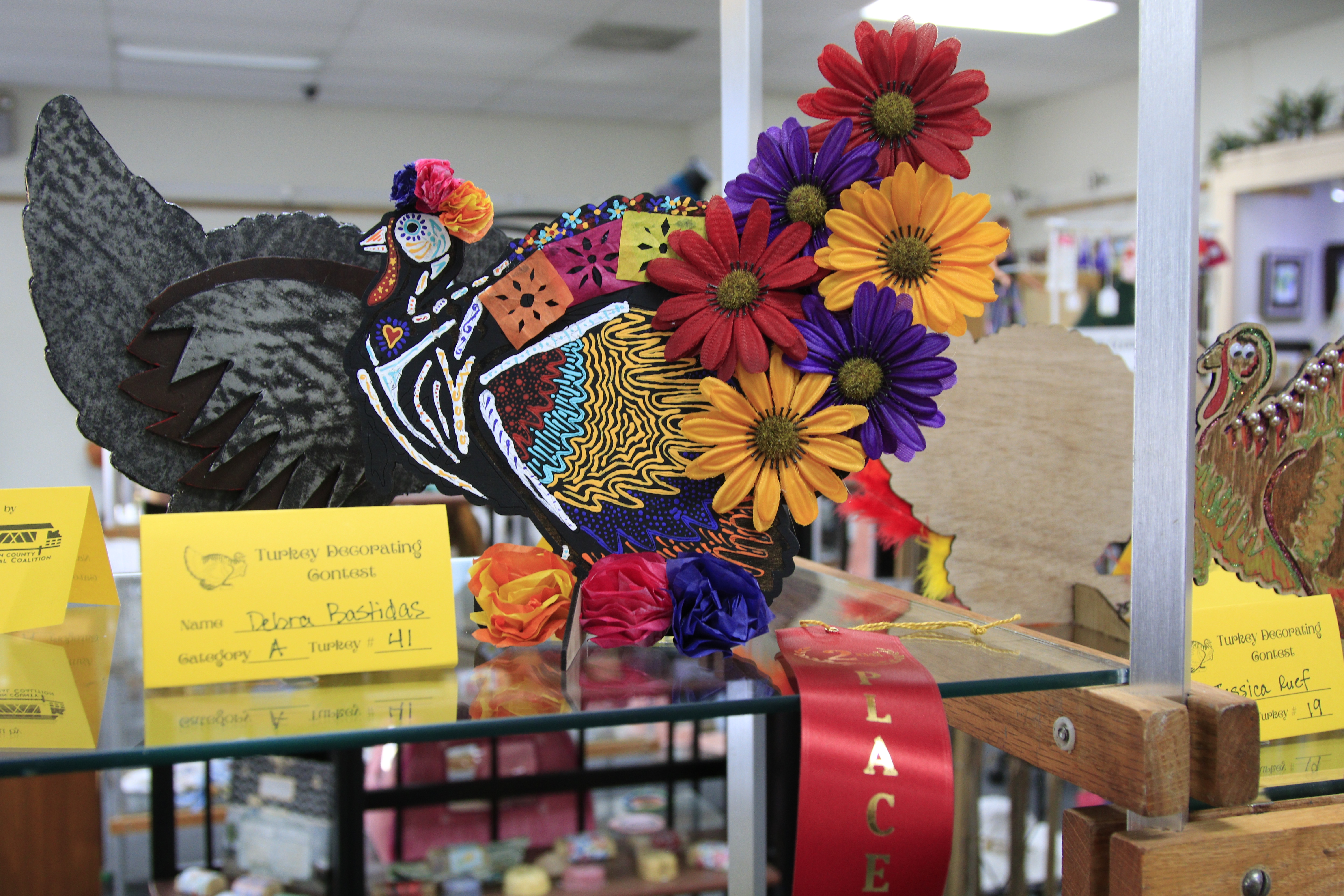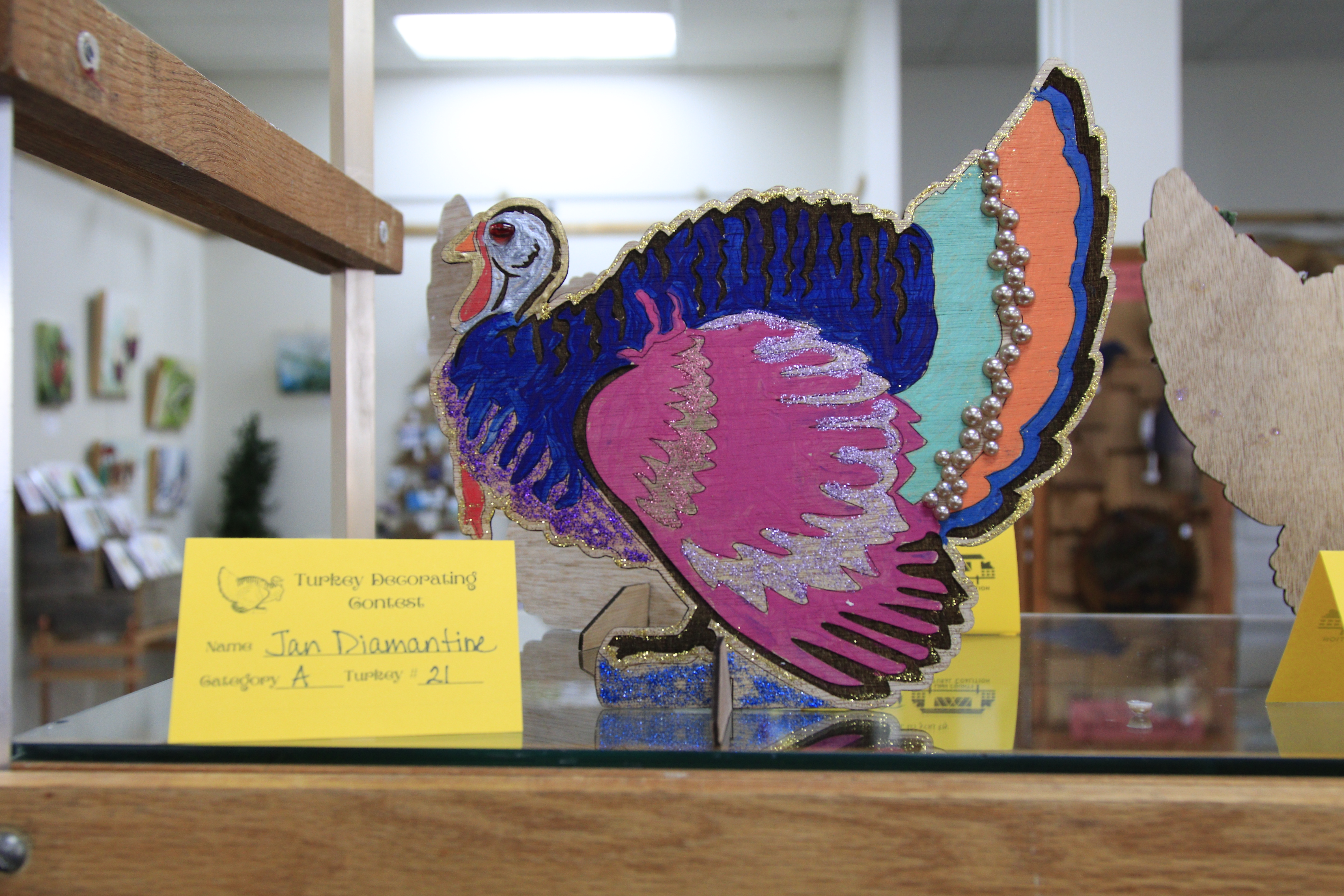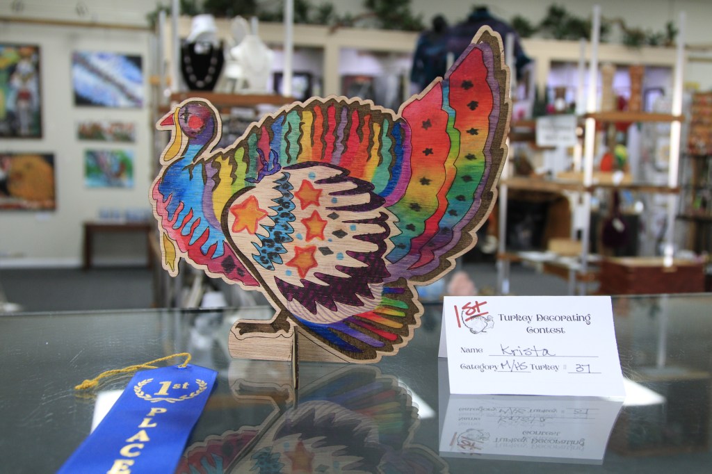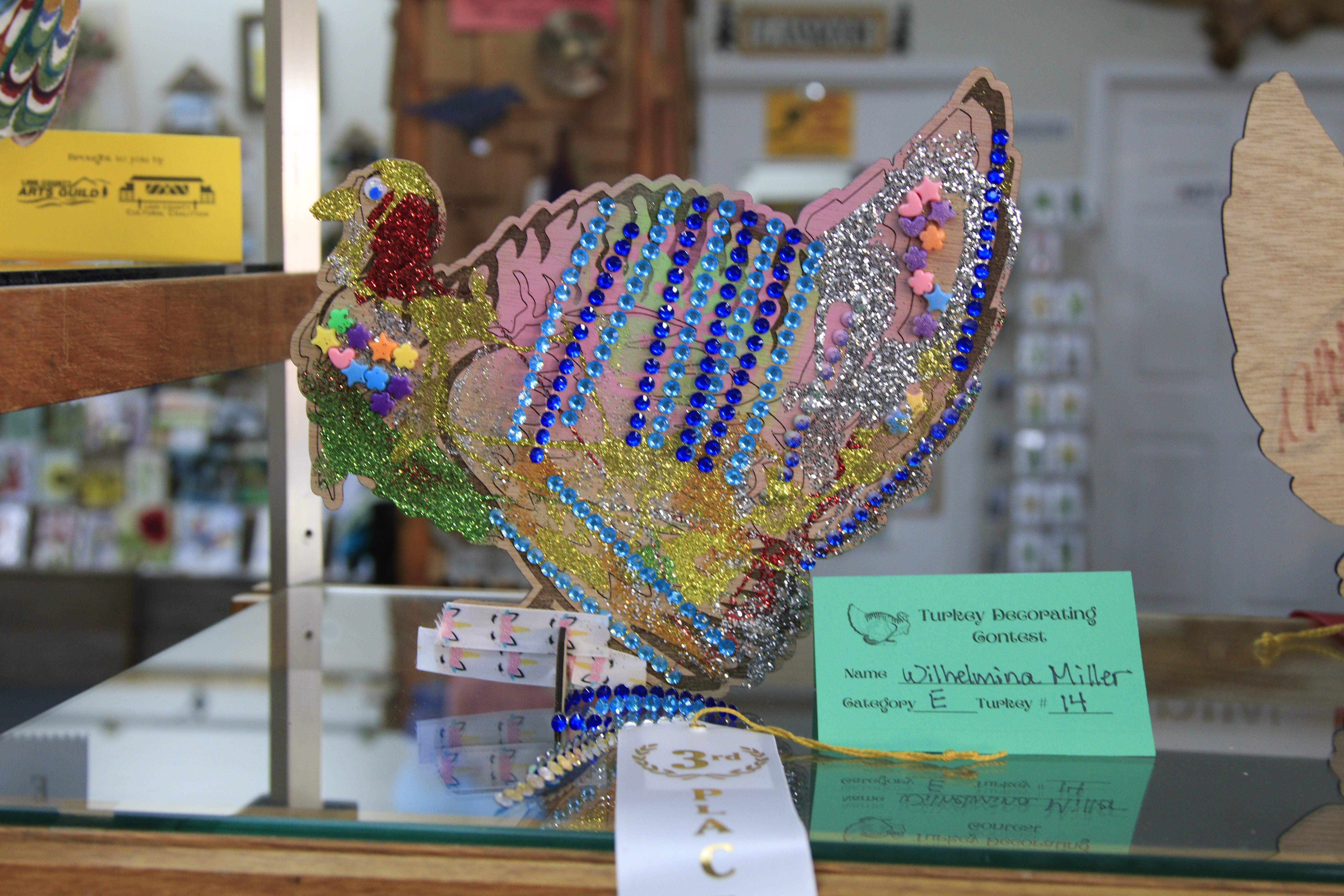 Thank you to everyone who participated in our turkey decorating contest this year. We had so many fun, fantastic, creative entries. And thank you to our community judges. It’s so hard to pick a favorite, isn’t it? Awards were given based on community voting. This year we didn’t have time for an Artists’ Choice award, but we do have ribbons for first, second, and third in the popular vote.