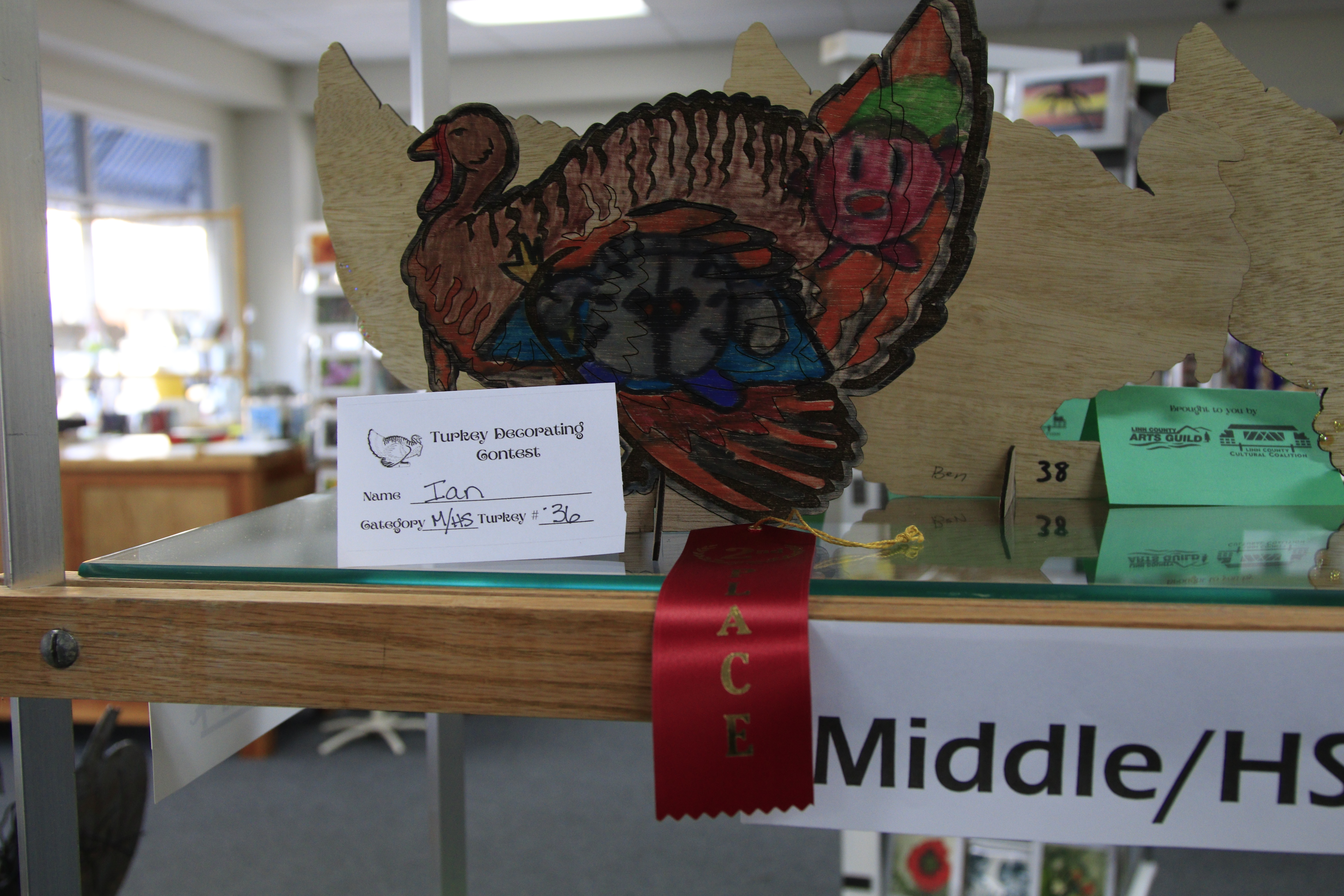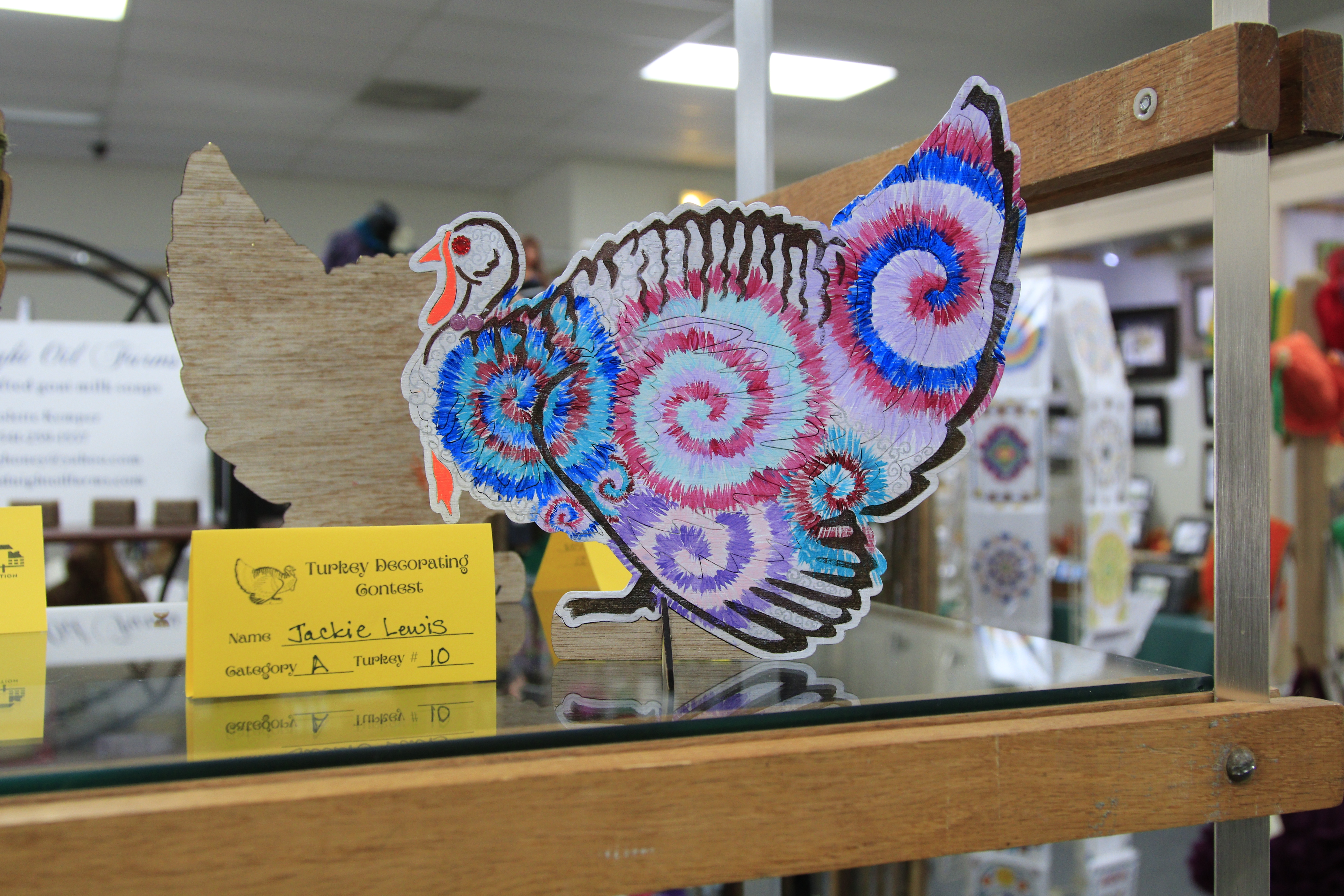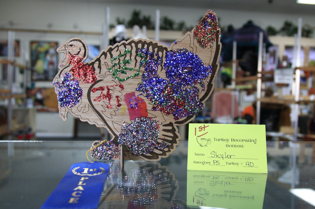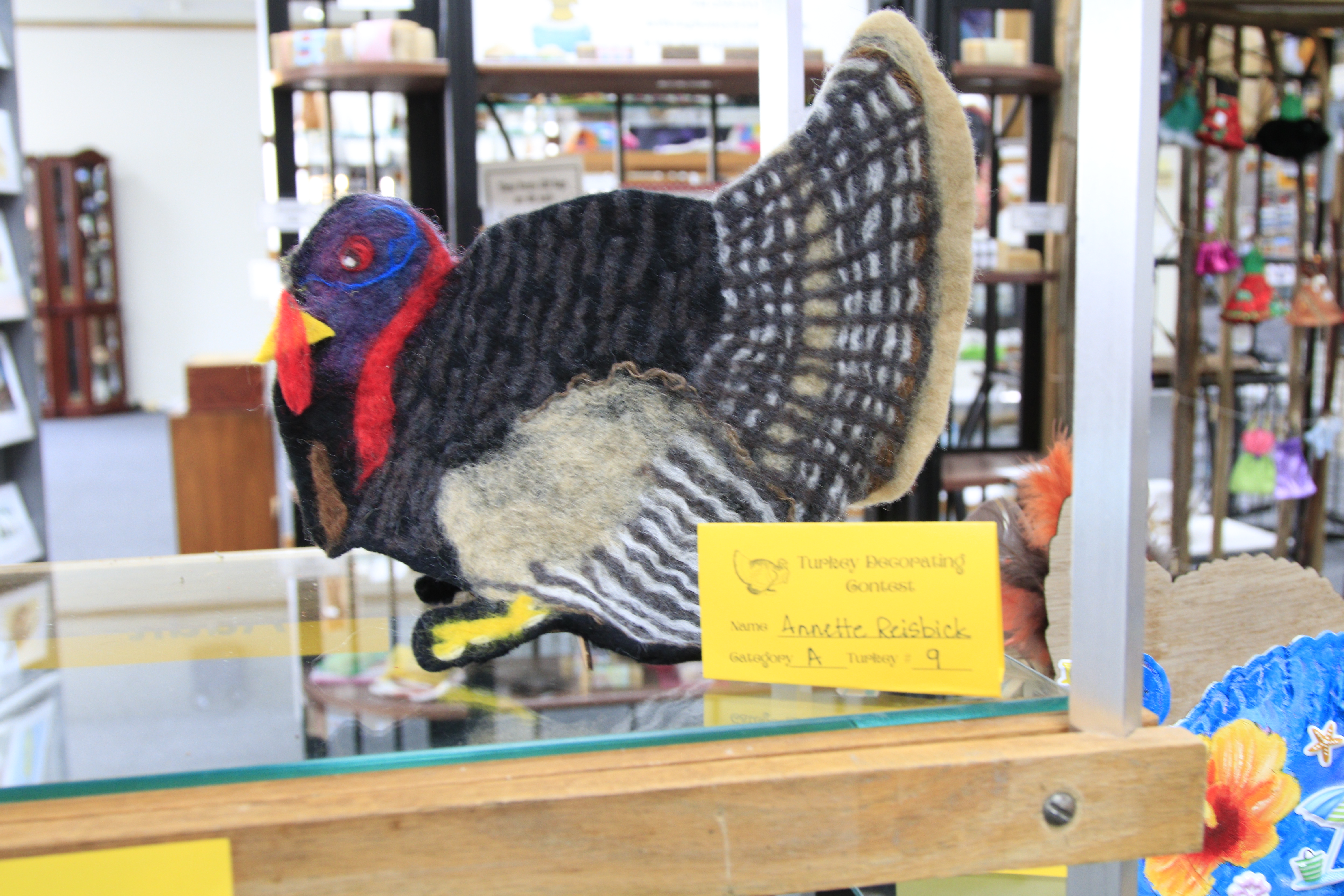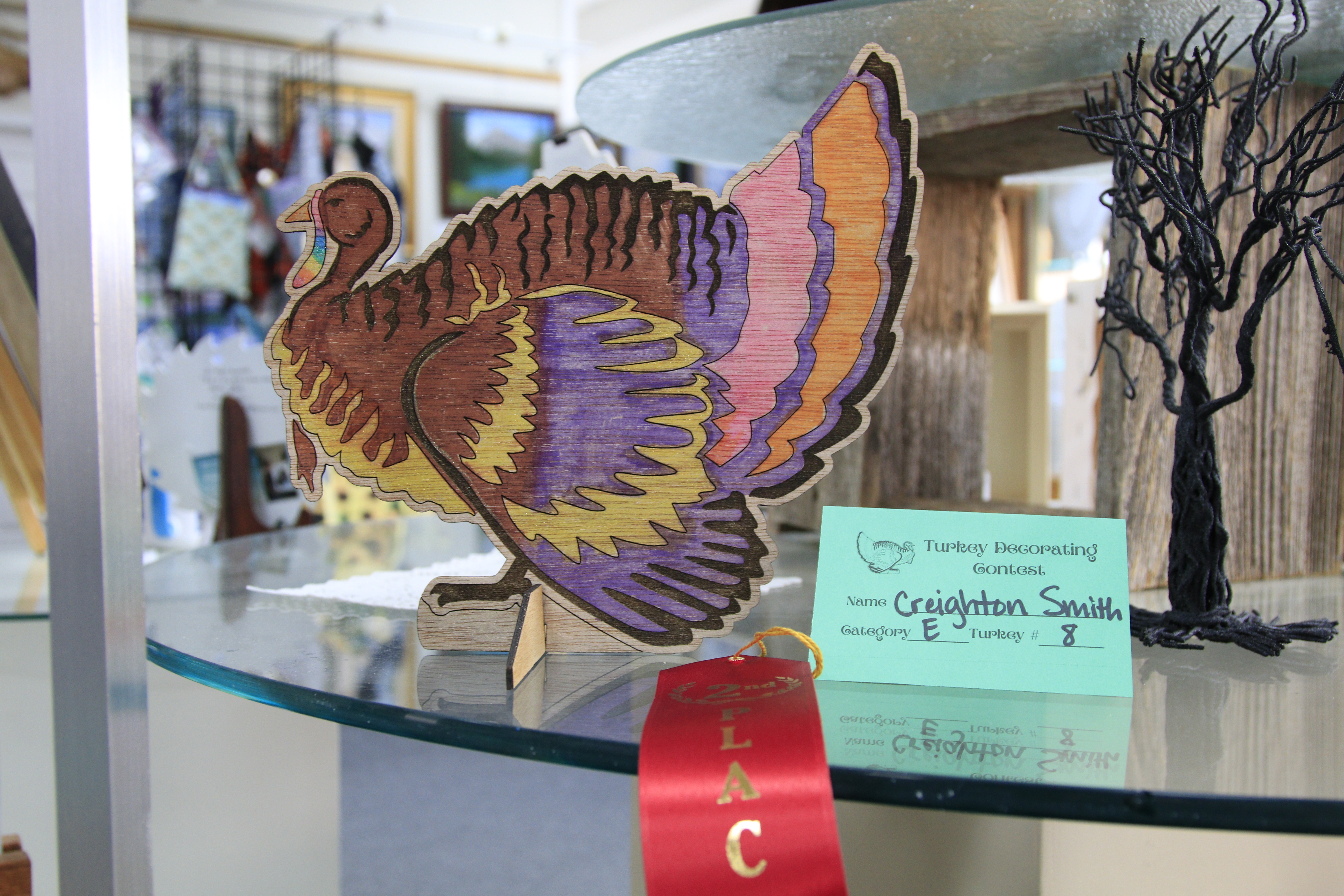 Thank you to everyone who participated in our turkey decorating contest this year. We had so many fun, fantastic, creative entries. And thank you to our community judges. It’s so hard to pick a favorite, isn’t it? Awards were given based on community voting. This year we didn’t have time for an Artists’ Choice award, but we do have ribbons for first, second, and third in the popular vote.