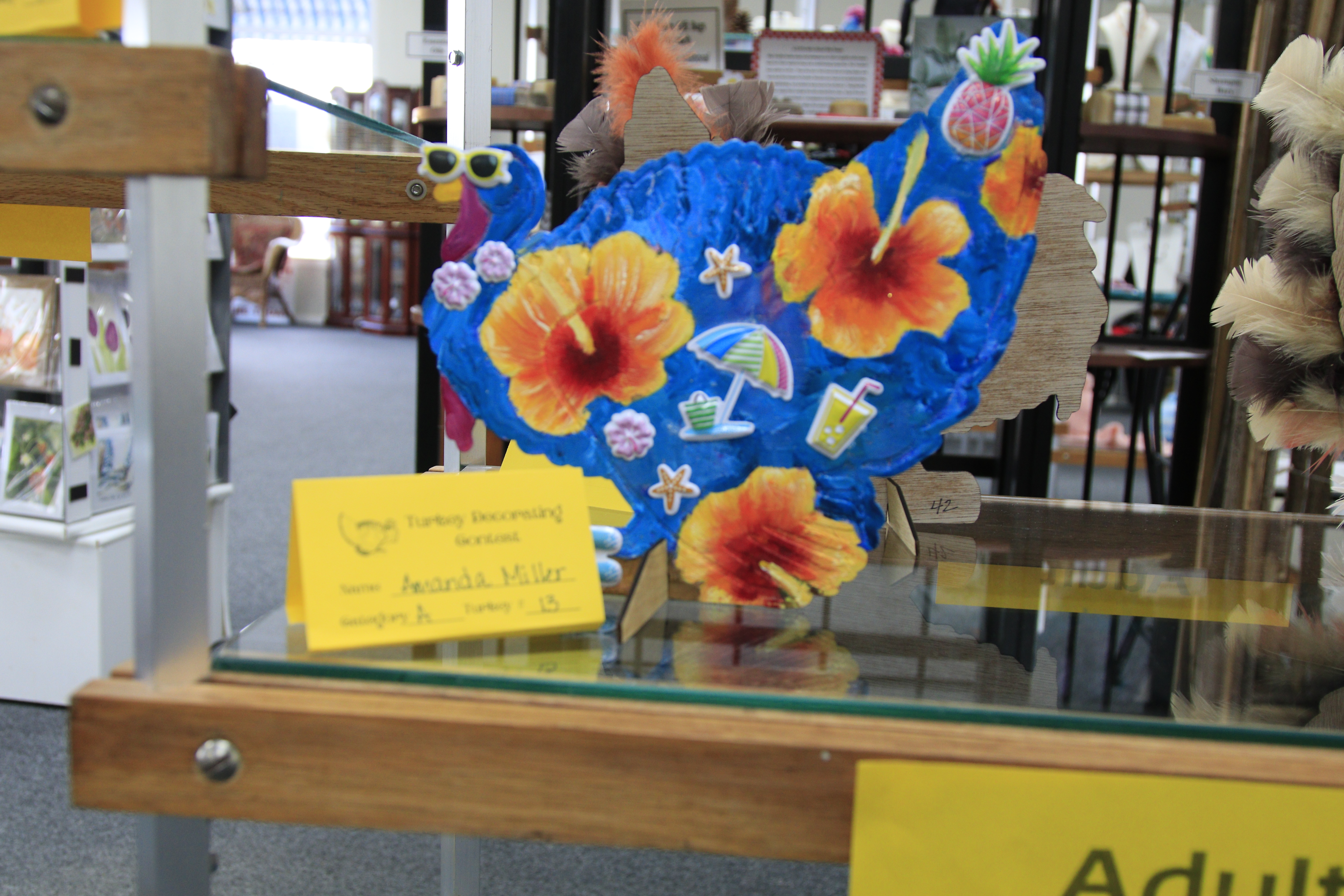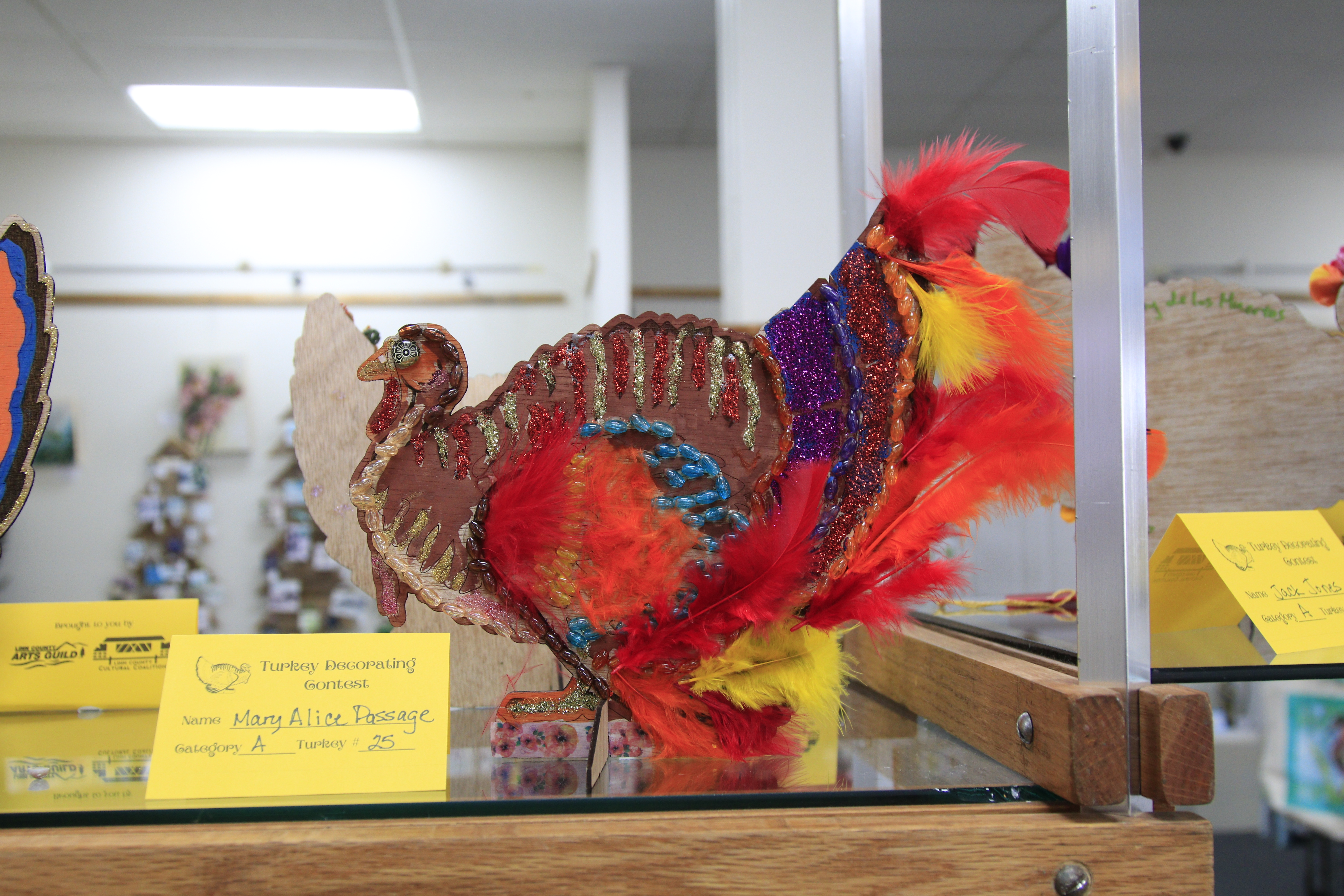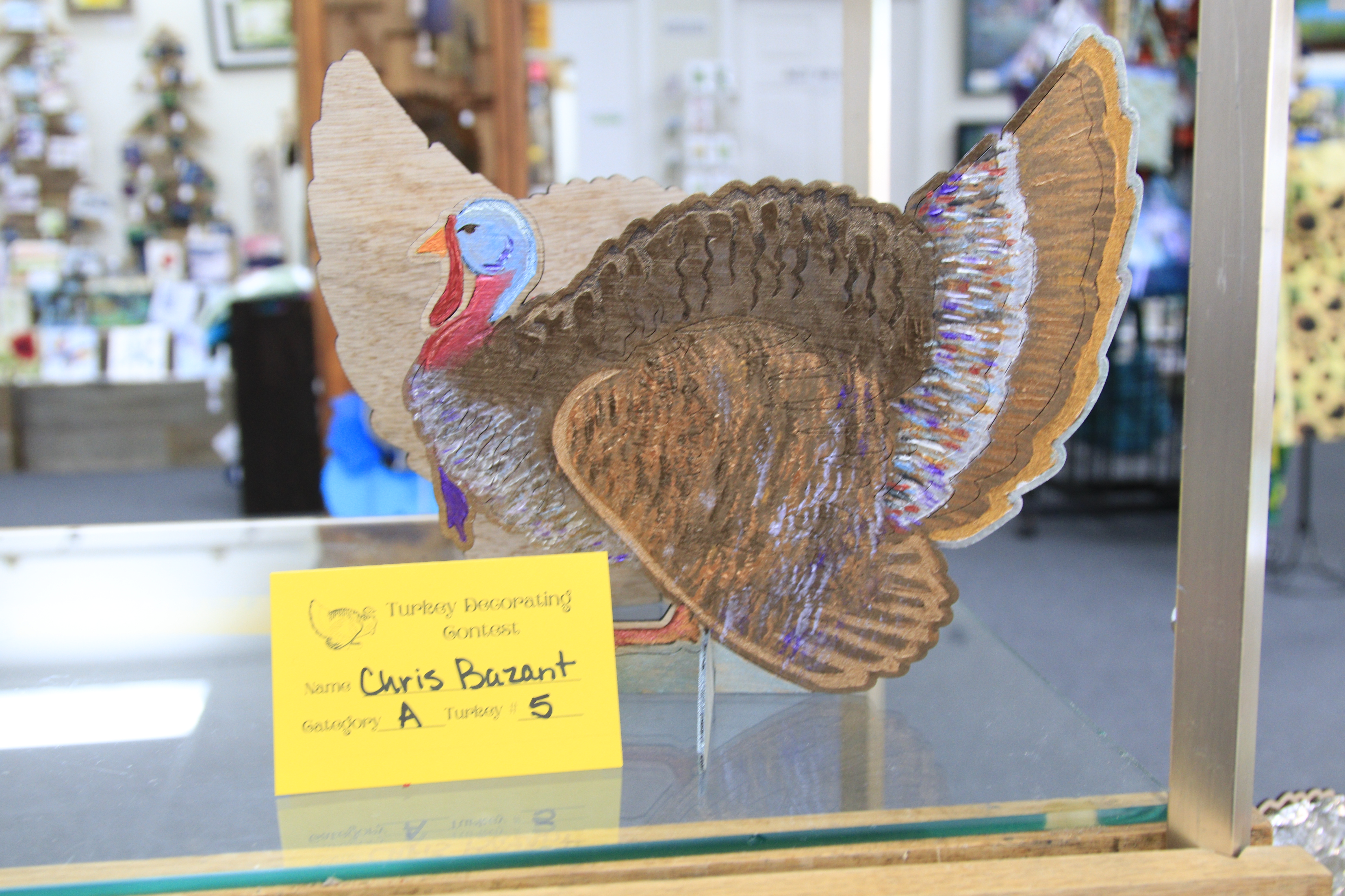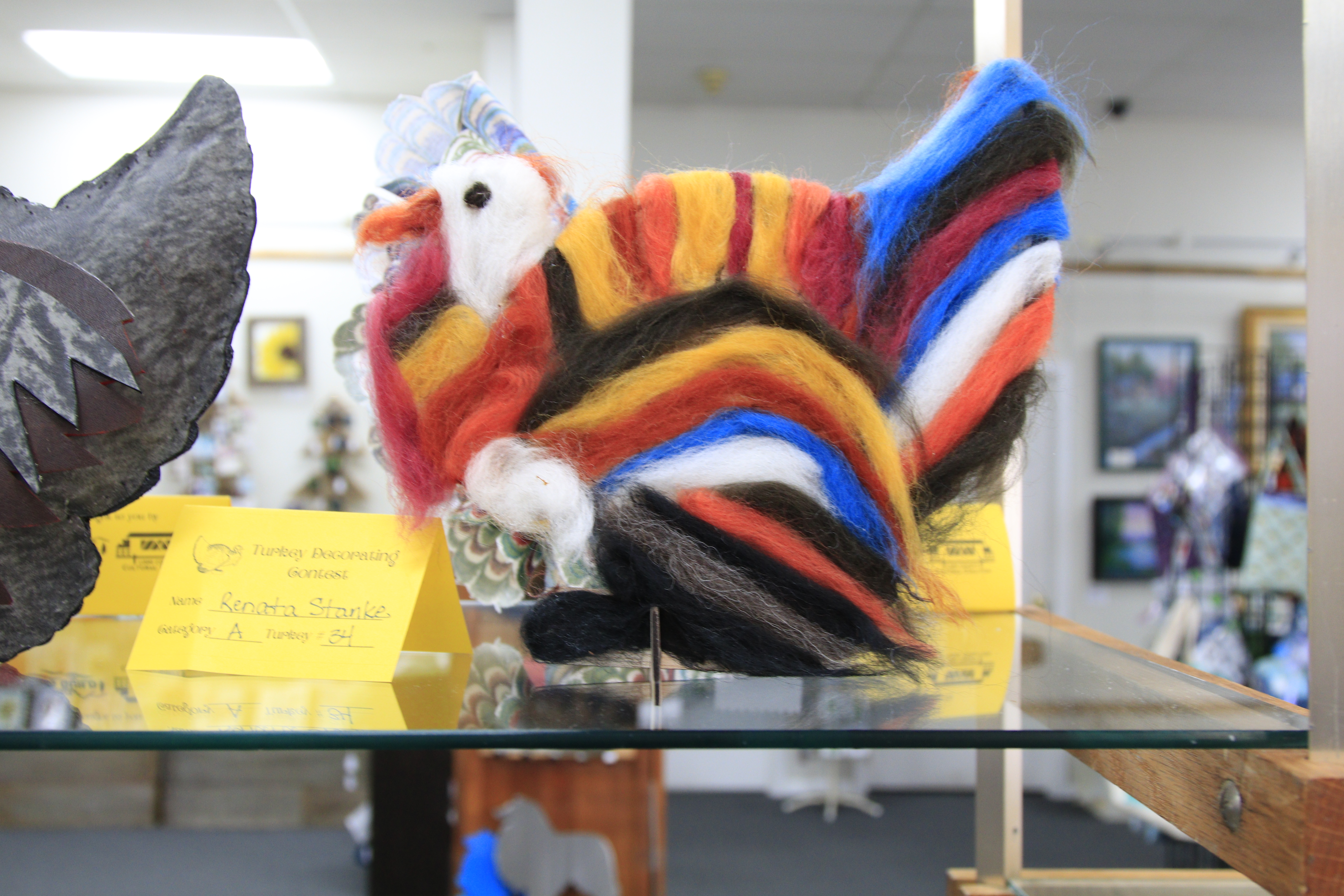 Thank you to everyone who participated in our turkey decorating contest this year. We had so many fun, fantastic, creative entries. And thank you to our community judges. It’s so hard to pick a favorite, isn’t it? Awards were given based on community voting. This year we didn’t have time for an Artists’ Choice award, but we do have ribbons for first, second, and third in the popular vote.