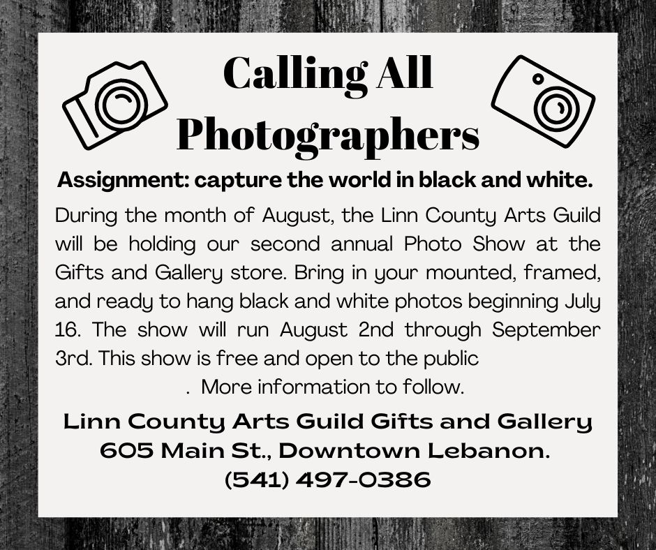 Photo show coming in August On June 4, 2022 By linncountyartsguildIn Photo Show Share this: Click to share on Facebook (Opens in new window) Facebook Click to email a link to a friend (Opens in new window) Email Click to share on Bluesky (Opens in new window) Bluesky Like Loading... Related