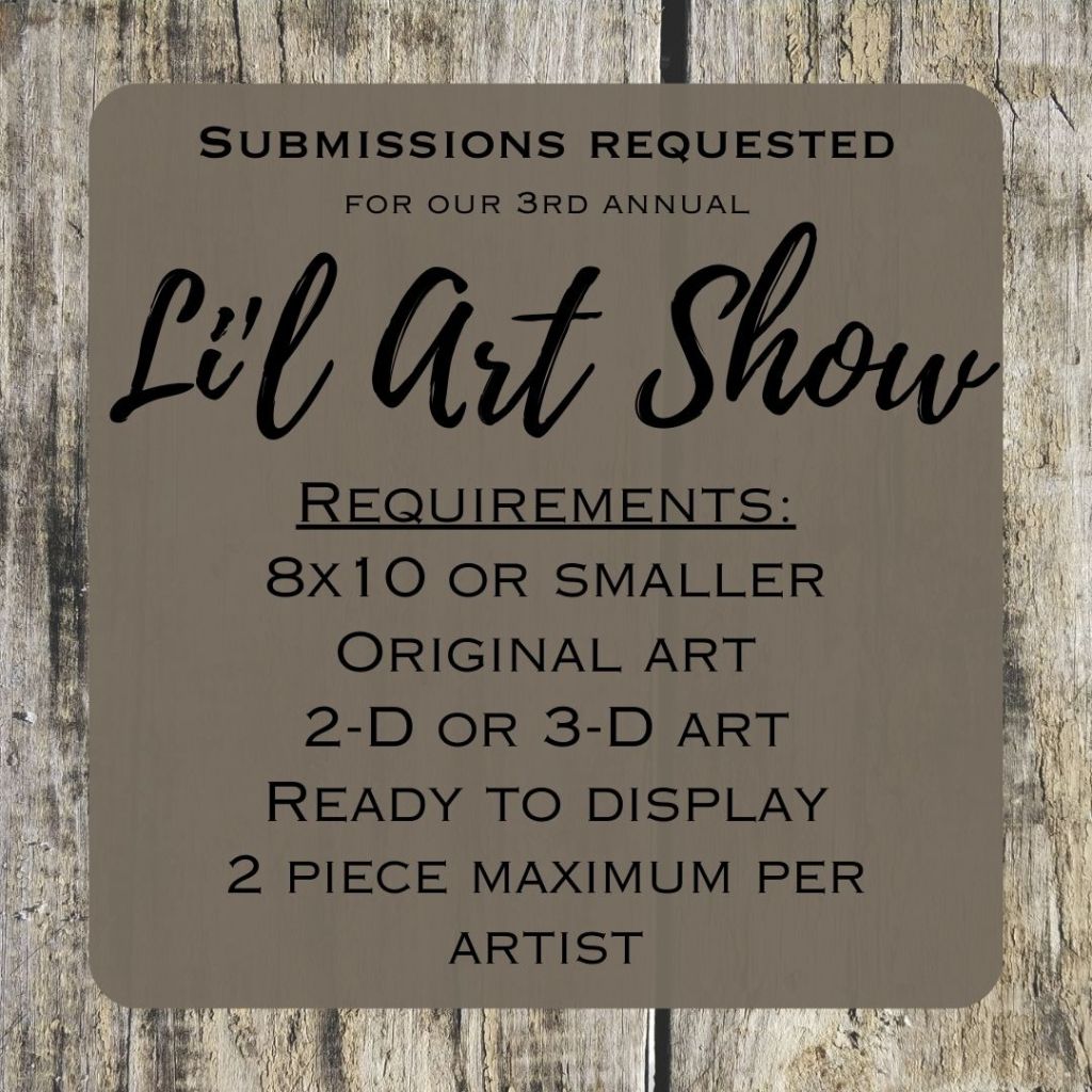 The Linn County Arts Guild will be accepting submissions of small art beginning May 22nd. The Li’l Art Show runs from May 30 – July 29. Contact the gallery for more information. 541-497-0386
