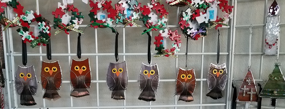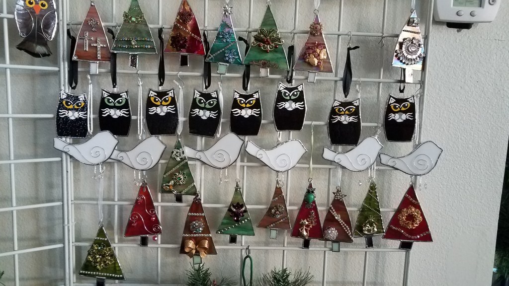 After a nice rest and a bit of rearrangement of the store, we are back up and running. Some artists were only here for the holidays. Look for them again come November. We said goodbye to our longtime friends Nemo Laine Art. They have promised to come back for classes and Meet the Artist events, so watch this space if you are a fan of their art. We also said goodbye to Kathy Jones and her beautiful stained glass and jewelry art, but not before buying up some of her pieces for personal enjoyment. We wish both of these artists well in their new endeavors.